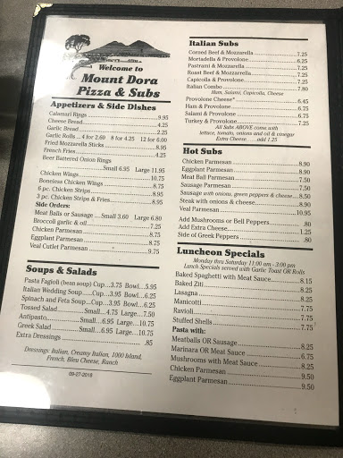 This is a family-run restaurant that uses the freshest ingredients along with fantastic recipes, a combination that has made it a Mount Dora institution. From salads to subs to pizzas to pastas, its hard to go wrong here. The quality of the food is incredible for the low prices. This is without question the best pizza joint in the area and is highly recommended. Dont pass up the opportunity to eat where the locals eat and give Mount Dora Pizza a try. You wont regret it.