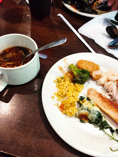 They have a huge selection of food, everything from Sushi to crab legs, to fries and pizza, of course a variety of Chinese dishes, a lot of seafood, and you can also have meat, veggies and seafood cooked to order. We paid $11 during the week for dinner, which is very reasonable; weekends are more expensive. You can also pick what you want for takeout, charged by weight (usually around $4,50 a pound). Would always go back there. The seating is spacious and okay. Service is efficient.