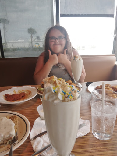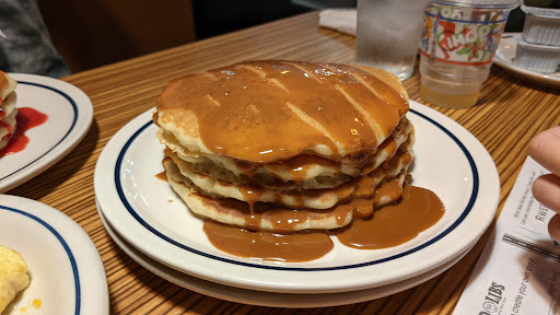 24 Stunden hat diese IHOP Filiale geöffnet. Was bedeutet IHOP? International House of Pancakes. Besonders bekannt ist diese Restaurantkette für das Frühstücksangebot. Und was auch besonders ist: Frühstück bekommt man 24 Stunden am Tag (und alle anderen Speisen auch). Egal um welche Uhrzeit wir hier vorbeigefahren sind, es saß immer jemand im Lokal. Einmal im Urlaub kehren auch wir hier ein und genießen ein kombiniertes Frühstück/Lunch. Aber genau die amerikanischen Pancakes sind nicht mein Geschmack, da bevorzuge ich doch die dünnere europäische Variante. Qualitativ sind sie aber gut. Die angebotenen Saucen dazu sind teilweise extrem künstlich im Geschmack (Erdbeer und Blaubeere). Aber die klassischen (Butter Peacon und Old Fashioned) sind ganz ok. Diese Saucen stehen am Tisch und man kann sie natürlich auch für French Toast, Crepes, Waffeln o.ä. verwenden. Neben süßen Sachen bekommt man hier auch Klassiker wie Spiegelei, Rührei, Speck, Hash Browns (wie Reiberdatschi) und Würstl. Nicht zu vergessen die Steaks zum Frühstück ;-) Die gemischten Platten sind recht groß und ich würde in jedem Fall erstmal nur eine Platte für 2 Personen bestellen und ggfs. etwas nachordern. Die herzhaften Sachen sind deutlich mehr mein Fall! Kein kulinarisches Highlight, aber in jedem Fall völlig in Ordnung. Wer mit Frühstück nichts anfangen kann, kann noch aus einem guten Angebot an Suppen, Vorspeisen, Hauptgerichten, Wraps, Burgern und Sandwiches etc. wählen. Preis/Leistung passt hier. Das Lokal ist sauber und der Service war jedes Mal freundlich. Wenn viel Betrieb ist, muss man mit etwas Wartezeit rechnen, aber völlig im Rahmen. Was mir hier gar nicht schmeckt: Der Kaffee (Never Empty Coffee...). Man könnte auch braunes Wasser dazu sagen ;-) Das ist aber leider in fast jedem "normalen" amerikanischen Lokal der Fall.