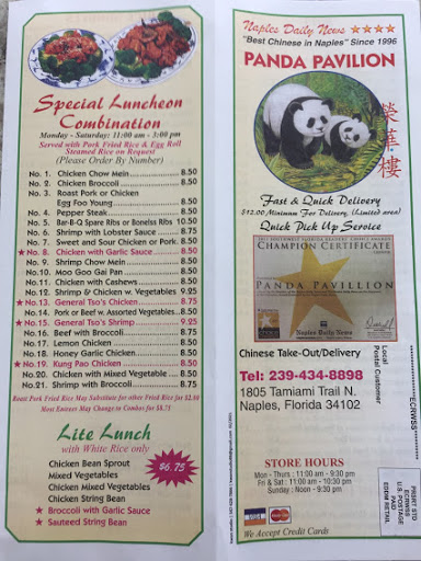 Panda Pavilion is definitely the best chinese food in Naples. Great menu, and fast derivery.