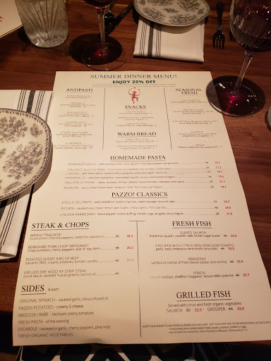 Dinner was good but owner please check the web sites for pazzo. I made reservations on open table. The early bird it says ends at 6:30 so I make reservations at 6 for 4 people. When I showed the waitress n then manager what is says (they said it was over at 6) the manager was extremely rude n said it wasnt updated and didnt care if we left or not! We are not tourists but live here. First and last time at Pazzo!!! Staff very disrespectful. That shouldnt have happened. The manager couldnt care less. No apologies. A lot of other restaurants who care about their customers