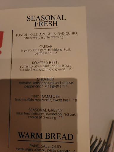 Amazing food quality, very upbeat and friendly service makes me feel at home. The atmosphere is very calm and chill but it feels like you are in italy with the quality of the decor, food, and music. They have every reasonable priced for 5th ave. Definetly one of my top 5 places to visit in Naples, FL. It is for sure worth your time.