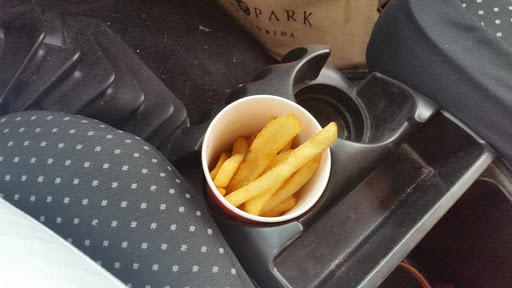 Both of us ordered specialty burgers with endless fries, plus 2 drinks for lunch on June 13, 2015. Pros: Exterior was neat, but some of planting areas were rather worn looking, generous parking, immediately greeted and seated by friendly hostess, both burgers were very large and quite tasty, price was reasonable for the full platters we received, waitress was friendly and helped us select menu items. Cons: Interior too dark, floors were free of debris but not clean, although we were only the third party to seated in that particular section of the dining area the waitress failed to bring our drink order for a full 10 minutes after ordered, she took another 15 minutes to bring our food order, after waiting then flagging her down to ask for refills she spent another 10 minutes getting the second drinks to us, orders were sloppily presented but that might have been because the burgers were so large, extra napkins were needed as the huge burgers were rather messy to eat. Since we did not know if the bar and kitchen staffs inefficacy was the cause for the waitresss slow service to us or not, we did leave an over 20% tip. And, as it should be, we also left a tip which included what the cost of the free birthday meal one of us received would have been. That is only reasonable.