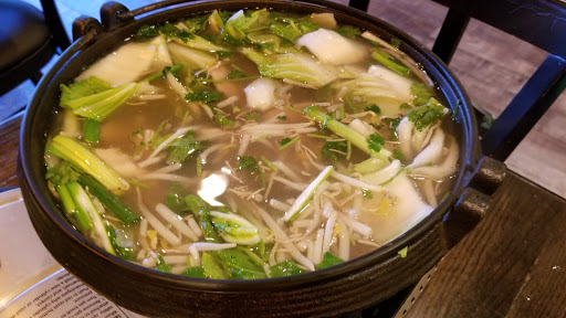 I was really looking forward to this place when I saw there was Ramen and the reviews. I have to say I was a little disappointed. Food was ok. Ramen was ok. Service was ok. I didnt get the layers and layers of flavor. There is only type of hot soup Ramen, which is seafood. So if you dont like seafood you wont like this Ramen. For seafood Ramen Id say it was decent. It was tasty, but not 5 star delicious. Korean BBQ sauces were ok. Two of the three of them were really really salty. Korean side dishes were not really Korean side dishes. Seaweed salad and ginger have never been Korean side dishes in any Korean restaurant Ive ever been to. It was dissappointing. The service was a little slow, but good when being attended to. One thing that was nice was the Miso and salad bar you could help yourself to. The decor and ambience was nice, Overall its an ok place. Dosent stand out in my head as the delicious Asian bbq place I was hoping it would.