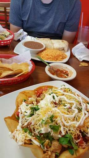 First time I have ever been to a Mexican restaurant that did not have guacamole. They have something they call guacamole, but the only resemblance it has is the color - and thats way off too. It looked more like lime green flavored mush that had the consistency of a slushy, flavor of water, and spicy hot kick of a jalapeno. The chips and salsa are $2, not free like many other Mexican places. The salsa tasted like it came out of a jar. Nothing had any flavor except our drinks. Spices are not there to replace seasoning! Everything was super spicy, yet somehow remained flavorless. There were eight full tables in there when we went, and one waitress... She was doing a great job but had to keep a continuous jog the entire time. It took about twenty minutes to get the food after we ordered. The place was relatively clean, as were the bathrooms. I will not return. Also the sign on the door says they close at 9pm, but they close at 8.