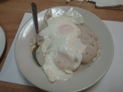 Food is good and a good value. Sausage gravy has rosemary which is an awesome touch. Wait staff not horrible but could use some improvement.
