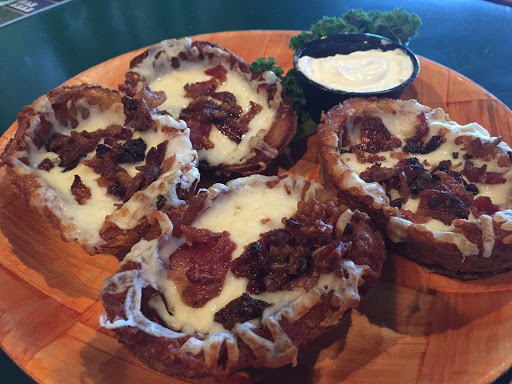 Great service, wide selection of sports bar food items from burgers to wraps to chicken and pizza. The buffalo chicken dip appetizer comes with chips and celery and filled us up before our main course. Great views and many big screen tvs. Well come back again.