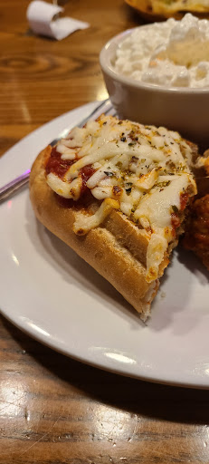 We ordered carry out items. I got the sirloin steak which came with well seasoned broccoli and carrots, and a baked potato. The steak was enjoyable although I did not like the mushrooms that accompanied the dish. We also had spaghetti and meatballs which was enjoyed by our youngest and came with 3 large pieces of garlic bread. In addition our oldest got the Margarita Pizza thin crust which was also enjoyable.