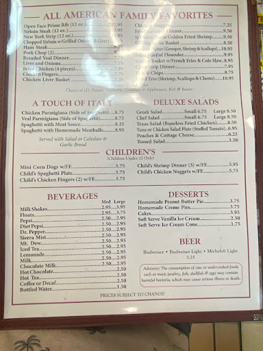 When I saw this little dinner I had high expectations... I mean dinners are kinda rare now. However, this place just let me down on really simple dishes. For a place so close to the water to only have a handful of seafood options was rather suprising but what they do have wasnt terrible. Its the basics they really screw up. Spegettii is always overcooked using a sauce straight from a tin can and lacking flavor. Chicken parm? Well... actually just spegettii with a deep fried chunk of chicken breast. Fries are premade and frozen, and they still manage to screw them up from time to time. The waiting staff is hit or miss, younger staff lacks a bit of professionalism often being on their phones and the more experienced staff generally doesnt care if your there or not so dont expect to get a refill on your drink anytime soon. That all being said it is a small town diner with small town feel, which it accomplishes. But thats about it...