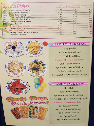 Your standard Chinese menu, with pretty good food. However occasionally you will come across a woman taking delivery orders who seriously has a problem understanding English. Look Im not knocking her for being Chinese and having a thick accent or anything like that, but if your going to provide your customers the best service you can, it would help if the people taking your order can understand what you are saying, what you would like to order, and control their tempers, and not tell customers to "stop complaining" when you are trying to clarify your order.