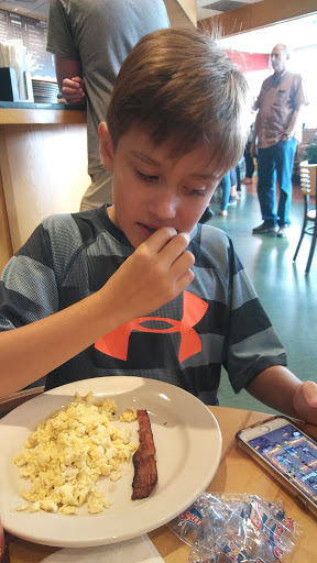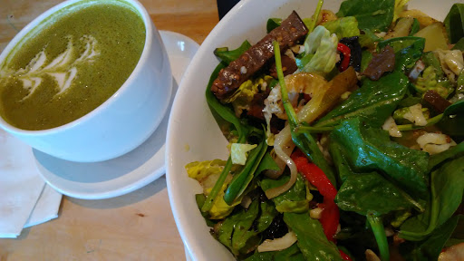 Good coffee. The food far surpasses my expectations for coffee house fare. I was happy with my choices. Friendly staff. Plenty of seating indoors or out. Clean restrooms. Easy to find. I cant give the fifth star because on my last visit they were very busy inside and sitting outdoors for me wasnt an option as they allow smoking on either side of the building. No thanks to having to smell someones cigarette while I try to enjoy coffee.