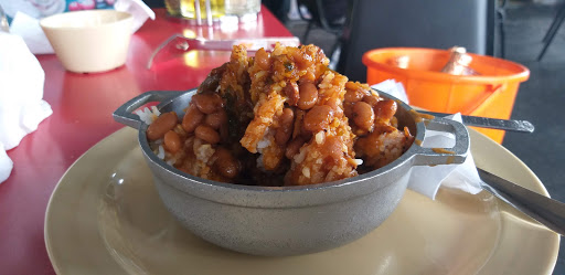 Its like been back in el barrio, comiendo en el patio bajo una lona, la musica y un gato buscando que dejes caer algo para comer. El mejor locrio de puerco que he comido, claro mejor que el mio no es. Las meseras son jovenes y no tienen un buen servicio al cliente pero es costumbre ya en restaurantes Dominicanos