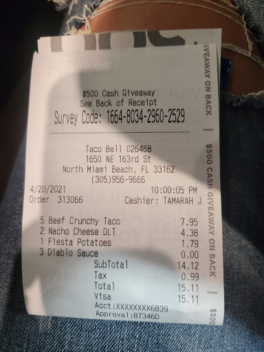 Good service from the employee but the tacos are terrible!!! There are better Taco Bells.