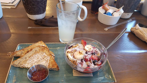 Delicious, fresh food with a menu for everyone. You can enjoy a "traditional" breakfast or get daring with "Millionaires Bacon" or one of their many healthy options. Weve tried many dishes and love the Sweet Honey Pecan salad. They also offer 1/2 sandwich & soup or salad combos. Its clean and the food is always fresh. There are plenty of options for gluten-free, vegan, etc. They also have a small outdoor section but it overlooks a busy road.