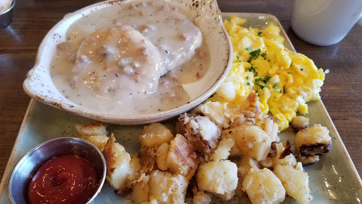 Wonderful place, prices are worth the upscaled menu items. Your cooks should be called chefs, such a delicious, quality touch. But your wait staff are fake Barbie-doll robots who annoy with fake sincerity, plop and drop your order, come back too many times with the same rote language just trying to pump up their tips (annoying). For example: while at the register, I was asked if everything was OK. I told the cashier one sincere statement and, seeing she was not really listening, I also told her there was a frog on my seat. Again, no reaction. Teach your wait staff to just stay within eye-shot - if the waitresses are cruising the floor, watching, their clients will see and know that the waitresses are waiting to serve their needs. I used to be a restaurant manager, so I know. Much better than being annoyed during our morning coffee, business emails or conversations. But I keep coming back because your place is nice and I have not tried everything on the menu yet! Excellent quality food, three notches up from Bob Evans next door!