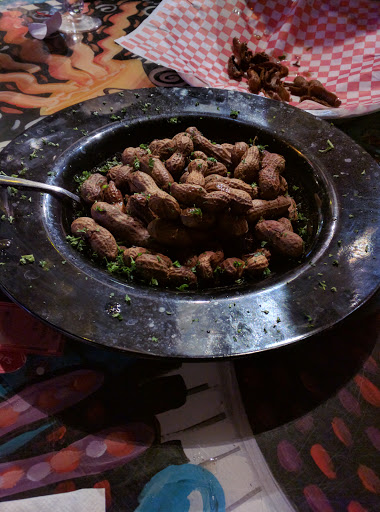 The sounds of the Blues are floating in the air and the vibe is very Bourbon Street. Even the various flat screen TVs inside this establishment are showing legendary musical performances from some the best Blues legends. If you go to the East Ocala location, like we did, you will notice an entire bands set of instruments hanging upside down from the ceiling...Its pretty impressive. Local artist Deb Grant hand painted most of the decor and every table in the restaurant, as well as painting in a tower area that hoists a 37 guitar chandelier at 40 feet in the air. Mojo Grill features a menu that includes burgers, empanadas, a Cuban pork dinner, Cajun chicken pasta, shrimp and grits, and a large selection of tasty appetizers. Entrees range from $7.99 to $14.99. There are enough entree selections to satisfy the pickiest of eaters, and they even have a gluten free section to choose from. In addition to craft beers, Mojo also has a good cocktail selection as well. The names range from Voodoo Child to Hellhound and are loaded with a variety of alcohols. Pops Cajun Boiled Peanuts were fun to eat at a restaurant. I love boiled peanuts, but usually grab some from a roadside stand. These were just as good. The Fried Pickles were crispy dill chips tossed in Cajun batter and served with a Cajun ranch dipping sauce. They were a big hit at our table, but a tad salty. Shrimp and Grits are on menus everywhere these days, but the Southern Style Shrimp and Grits with Applewood bacon, cheddar cheese grits and Cajun alfredo sauce was a very satisfying dish. Rondos Famous Cuban Pork Dinner was a hearty portion of tender and juicy marinated pork in rondos secret mojo sauce. The Cajun Dip is Mojo Grills take on a French Dip with Cajun rubbed roast beef,swiss cheese and au jus for dipping. A really good sandwich with a little extra zing to it. The Rasta Pasta is a penne pasta dish with sauteed bell peppers tossed in jerk alfredo sauce then topped with jerk chicken. The heat of the spices and the creaminess of the sauce made for a unique and delicious flavor profile. My only disappointment at Mojo Grill was the Churrasco Steak. This is an 8 oz hand cut skirt steak grilled and topped with grilled onions. The steak is served with house made chimichurri, black beans and rice and sweet plantains. The steak was a little tough and had way too much excess fat. If you happen to find yourself out near any of their three locations stop by. Its worth it just for the atmosphere alone.