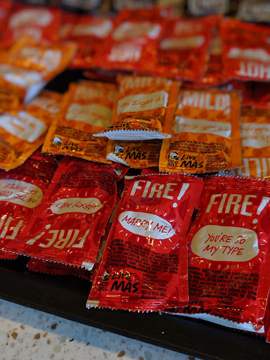 I enjoy the soft tacos with pinto beans and cheese on the side. My wife likes the crunchy tacos. We are not very daring and only use the mild sauce. All very good.