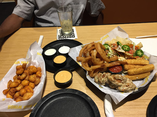 As a local, I come here from time to time. Usually it is to meet up with friends, have a beer and watch a sports event. First, the pluses. One of the big draws to this location is UFC. They get all the PPV fights, so it is popular and crowded, but fun and energetic, a great atmosphere. Beer selection is great and at a great value as well. Lots of TV screens so you can see your event from any place in the venue. Now for the minuses, and there is really only one: The food. Its terrible. Awful. Lots of room for improvement. The wings are okay, but just okay. This could be a 4-5 star place if the food were better.