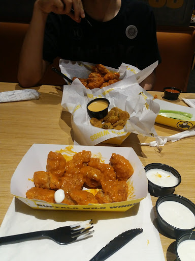Waiter was sweet but inexperienced. There was less then 50 people in the place and took longer then should to get drinks. Order was wrong. Ordered boneless wings got bone in wings. So then we had to wait again to get the right order. No apology from manager or offers due to inconvenience which I thought was pretty unprofessional. Then I ordered a side of fries, they never came. Wings were over cooked when we finally did get the right order. I was pretty disappointed as I have been to many bww. And now after this experience I dont want to go to any of them. Surprised this place is still open the experience was so crappy.