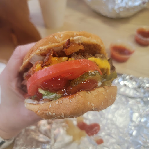 Typical five guys, with a great burger and fries... Bit pricey but they use great ingredients.