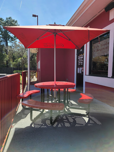 Friendly staff. Amazing food! Clean and organized. Food was fresh and hot. No drive thru. Burgers and fries. Other options are available also. Inside and patio dining available.