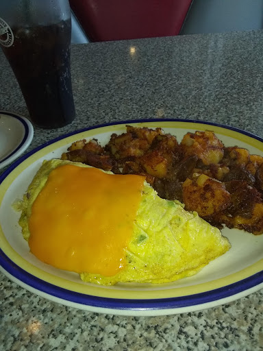 Had a very bad experience years ago at the old location before it burned down. The manager was rude to me and my toddler son and I vowed never to go back. Well my oven died yesterday so we needed to take the kids out to eat and after much begging to give it a second chance at the new location, I gave in. The waitress was nice but the food was terrible. The eggs were watery and tasteless. Sausage was hard on the outside and gushy inside. The bill was over $50 for four people and all dishes were breakfast or salads. They charged for a refill on the kids lemonade. Really? Cmon give a free refill! The walls and windows were dirty and grimey and spider webs in all the lamp fixtures. For a newly opened placed, I was surprised at the dirty conditions. I will stick to First watch or IHOP.