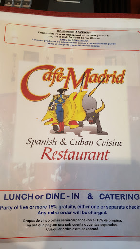 Delicioso!!! So to surprise me for Valentines Day (and Im pretty sure to fulfill my craving for croquetas) my boyfriend brought me to Cafe Madrid. I was sort of leery considering "Madrid" is in the name of the place while i was expecting straight up Cuban food, BUT boy am I glad he brought me here. I had an amazing shrimp al ajillo with white rice black beans a salad and a side of maduros YUMMMMY lol. My boyfriend had arroz con gandules with carne guisada and of course he had some of my food because it was soooooo good. We also shared an appetizer of ham croquetas. For dessert i decided to try the tres leches per our servers suggestion and as much as i dislike wet cakes i LOVEDDDD Cafe Madrids!!!! Perfect portions and good price....You should just stop reading, go, and check it out for yourself... :)