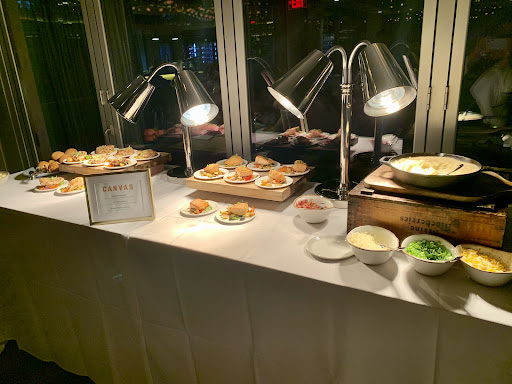 Walking through the doors at Canvas I was greeted with very inviting atmosphere. Easy to navigate through with warm smiley staff. I had an excellent salad followed by fish, and an amazing chocolate bread pudding dessert. The food was very good and looked better then the pictures while tasting even better than it looked. Very well prepared reasonably priced. I had a outstanding experience thank you guys delivering.