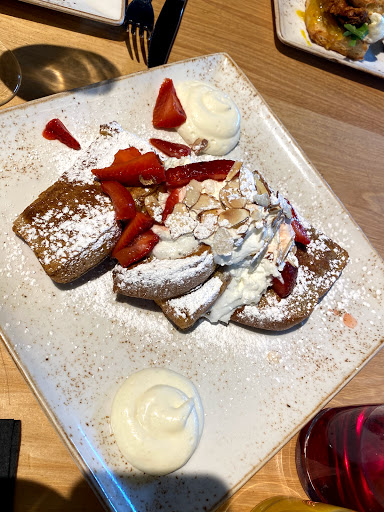 Good food and a really great interior. There are seats by the water that will give you a great experience while visiting this new, upscale restaurant. You can see the some of the chefs and cooks preparing food, which adds to the intimate ambiance. There are not official kids menus, almost as if they want to deter you from bringing them. We ordered the Flatbread pizza and it was so crispy, my children couldnt bite through it. I was not impressed with the selection for kids our last 2 visits. Well have to keep this place in mind for date nights instead.