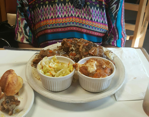 So I bought a Groupon for this place. It was like $30 for $60 worth of food, so I bring two other people with me and we order $60 worth of food and we try our best. We started off with Fried Green Tomatoes (Dipped in seasoned batter, deep fried. With Parmesan grits & gravy), and we got the added crab meat for like $4 more. The tomatoes themselves were awesome. They were the diameter of about a soft ball, and they had a great meaty bite to them. The breading was light and wonderfully seasons. The grits were done just right. Perfect. Honestly, though, I dont think the crab meat added anything to the dish, so save your $4, please. Then we ordered a vegetable meal with three different sides to munch on, fried broccoli, french fries, and onion rings. The fried broccoli was awesome. Fried broccoli always it. Neither of the people I was with had ever had it before, so if youre one of those people, please try this. Its unexpectedly delicious. The french fries were eh. Skip them. The onion rings were good. They had a good batter-to-onion ratio, but I wish there had been more of them on my plate. We also had six of the Jalapeno Crackling Muffins. Six for only $5, and or server gave us seven. Score! They were good. Just imagine jalapeno cornbread in muffin form. I recommend them, if you plan on ordering the barbecue. Next we got our hands on the BBQ Ribs/Chicken/Pulled Pork Combo Platter. The ribs were actually not very good. They were overdone and chewy. Enough sauce helped me with them, but they just werent done right. I ended up not trying the chicken. All this food made me have to prioritize, and I just dont particularly care for BBQ chicken. The pulled pork wasnt pulled at all, but it was chunked and drizzled with sauce. These were actually very good. I enjoyed eating them with the muffins. Delish! The two sides we got with the BBQ platter were the hush puppies and the mac & cheese. Both are very good. The mac & cheese actually won best side item overall for me. Its in a little ramekin and the whole top of it seems like it was broiled so the cheese is a little crust, and its ooey gooey underneath. Please, have it! Finally, we ordered two types of chicken and waffles, butter pecan and sweet potato. The chicken wings that came with both of them were very good. Not at all greasy and seasoned well. Really good fried chicken. The only gripe I have is that I wish that there were other pieces to the chicken there other than just wings. Ask your server about this if you feel like you might feel the same way. The waffles were good. I preferred the butter pecan. Those pecans added a real nice bite to the dish. I actually didnt like the mashed sweet potato on top of the waffle that much. I didnt hate it, but the flavor just wasnt strong enough to make me think it was a good idea. Also, with the chicken and waffles, the only option for a sauce I was given was syrup. I love sweet chicken and waffles, but I would also like the choice between a sweet or a savory sauce to go with it. Honey mustard would have been appreciated. Overall, I had a great experience here. It was good, home-style cooking that you dont find in most places unless you want to pay an arm and a leg. Head for the chicken and waffles, but maybe steer clear of the BBQ platters. There are plenty other options on the menu. Im glad Groupon showed me this place, because I will be back.