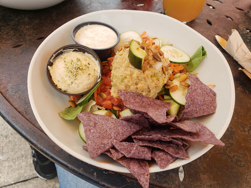My husband and I took my omni mom here and we all loved it!! I had the mushroom sandwich on sourdough with the sweet potato queso, the mushrooms were tender and had a great flavor and the queso was the best Ive ever had. My husband had the buffalo 66 as a wrap and with half grains half greens. The Tempeh was seasoned really well and he said its the best wrap hes ever had. My mother got the sweet potato burrito. The wrap is grilled and there were crunchy bits in the burrito, so its got a good texture. She said it was delicious and would order it again. The kombucha on tap was lightly bubbly and not sweet. I had the peppermint lavender, and loved the lavender after taste, its my new favorite. My husband had the lemon ginger kombucha and it is not for the faint of heart. It has a great and strong ginger flavor which he loved. The people working there are really nice, helpful, and accomadating with no attitude. The owner helped us navigate the menu and gave us great suggestions of other vegan places to check out in the area. Overall, 10/10 would recommend!