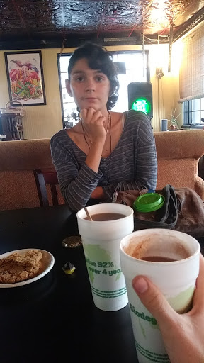 So I like this place because its a small, locally-owned coffee shop that offers a lot of personality. This place feels like it was designed to be welcoming to just about anyone - great food and drink options for any sort of diet (very vegan friendly with some vegan pastries that would be good to most non-vegans!). I would love to come here to meet up with a friend or curl up with a good book. My only big gripes would be that the space is small and can often fill up quickly, and the set-up just doesnt give many options for getting some real work done (space for a computer, book, lots of papers, etc... which is usually my reason for patronizing coffee shops).