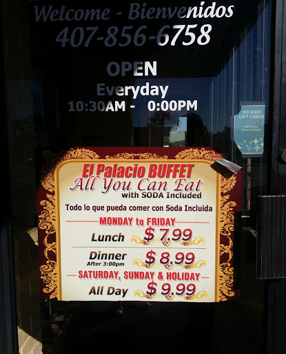 Este lugar ofrece una variedad de la mejor comida hispana en Orlando. Con un precio de $7.99 de Lunes a Viernes y Sábados y Domingos $10.99 este precio incluye las sodas. Desde Hamburguesas, tacos, steak, Pizza, lasaña, comida china, sushi y tienen servicio de plancha "hibachi", verduras, sopas, postres, pasteles y tamales, pernil, bistec ensebollado, carne guizada, ropa vieja, sancocho, mondongo, cuajito, patas de puerco, costillitas, pollo azado y frito, arroz de todas clases y habichuelas de todas clases, ensaladas, empanadas, quesitos, besito de coco, tres leche, plátanos maduros, tostones, alcapurrias, sorrullito, mariscos, cierra frita, camarones, almejas, pescado. Wao en fin en mi opinión el mejor buffet restaurante para pasarla bien en familia al mejor precio y realmente con el mejor zason en Orlando. Date la oportunidad y pruebalo tu mismo yo se que te quedaras mudo de lo mucho que te va a gustar. Esto esto esta incluido en el bufett y no hay trucos.
