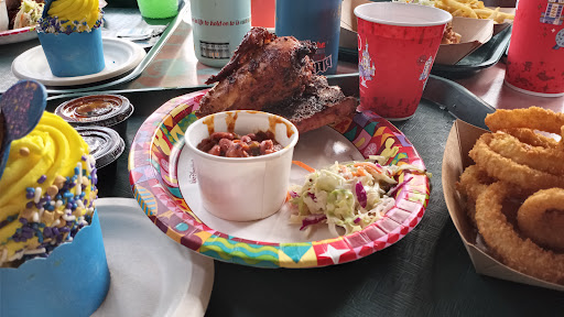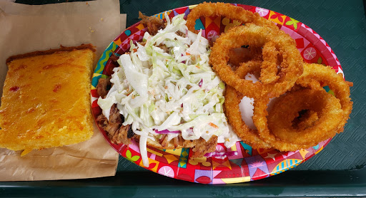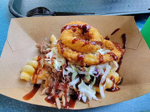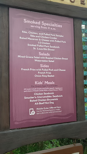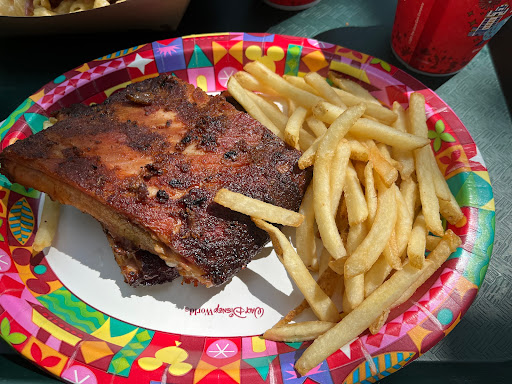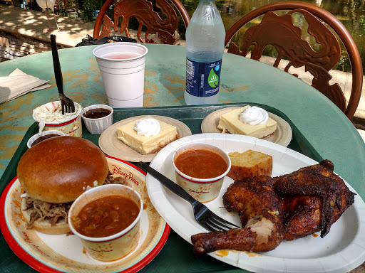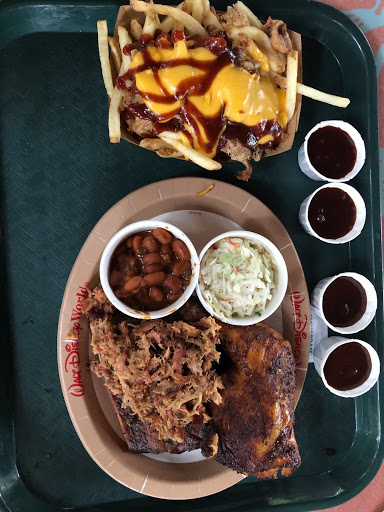 I dont understand why the reviews are so good. It was very bland barbeque and large birds were stealing food off of childrens plates. Had bugs bothering us and had to sit out in the hot humid weather. The pulled pork fries were ok. Frozen fries with fake cheese. People must just be very hungry from walking around the park.