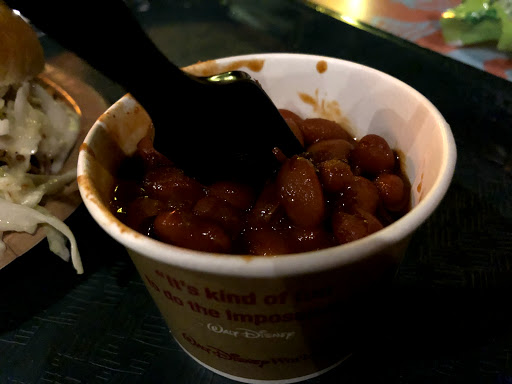 This place is my favorite place to eat at Animal Kingdom!!! This BBQ is so yummy! I had the Ribs, Chicken, & Pulled Pork sampler- & let me tell you- the portions was more than enough to fill up my husband and me. The dish comes with beans, coleslaw, & jalapeño bread & it was so good!!! I cant wait to go back. Best use of a quick service credit at Animal Kingdom!