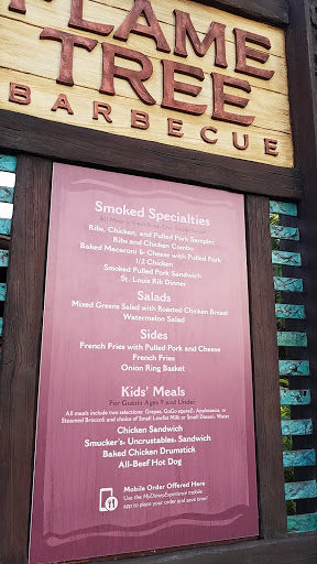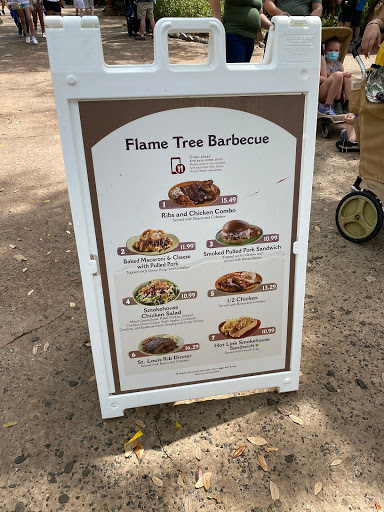 I really liked the Flame Tree Barbecue restaurant. Its too bad I cant give half stars because I like it better than the three star rating but its just not at the level of some restaurants (in Disney World) Ive given four stars to. The food is always good and the quantities are awesome. You really get your moneys worth here. As the name implies its mostly BBQ offerings and they do it very well. If youre spending the day at Disneys Animal Kingdom and are looking for a reasonably priced quick service meal Flame Tree gets a very high recommendation from me.