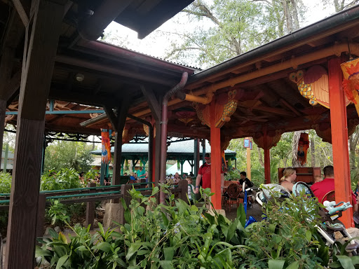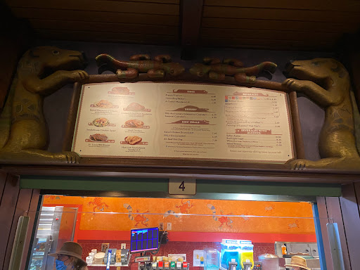 If its a busy day in the park, send someone in your party to get a table when you get in line. There are plenty of tables, but they fill pretty quickly. The seating area is well-shaded, so its a decent place to rest. The food is good, better than usual theme park cuisine, and the staff works hard to keep things clean and moving quickly.