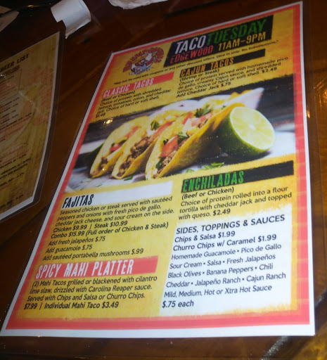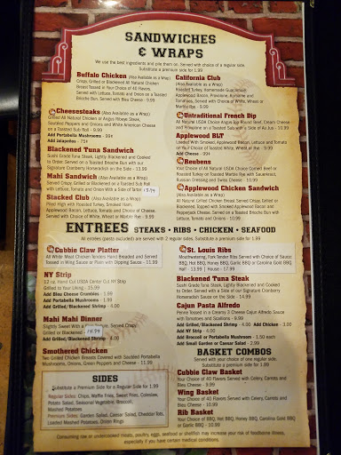Very nice local bar/restaurant. The food is very good and freshly prepared, including burgers, nachos, salads, sandwiches, hot dogs and full entrees, including tuna, mahi and steak. I have had many of these selections and I have never been disappointed. I especially like the huge cobb salad, grand slam nachos, Chicago dog and the tuna entrée. Great beer selection with 10+ drafts and big selection of bottles. Full bar.