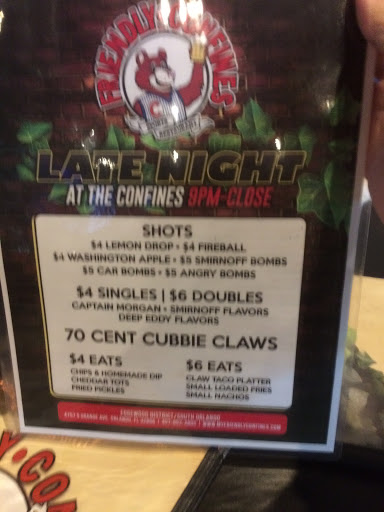 I really like friendly confines, its open late which is really nice if youre coming back to this side of town after a day at the theme park or something like that. I really enjoy the food and their drink selection.