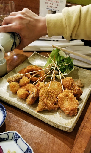 I have eaten here several times in the past few weeks while traveling on business. The menu is extensive and even a bit intimidating. I am determined to try some of the selections that are prepared table side, but always end up in my comfort zone ordering sushi. On the first trip there, I ordered some sushi to start, then a Japanese Kobe steak (standard $25 per ounce). I was expecting this to be delicious having had Japanese A5 Kobe beef at several places before. The sushi was delicious and fresh. When the steak came out, I knew I was going to be disappointed just by its appearance. What should have been a small, plump 5.5oz medium rare steak was a very thin, stringy piece of meat. I had ordered it with garlic sauce, which seemed to just be minced garlic all over it which completely overwhelmed any flavor the steak may have had. Kobe is supposed to be high fat content, but the marbling is supposed to be even. This was far from it, and almost mimicked a very thinly sliced Delmonico with chunks of fat and string membranes. I figured I had been taken advantage of for having ordered a $130 steak. Charleys in the same plaza offers a large (American) Kobe steak for a little more than half the price, and although I havent eaten it, the look of it makes me confident it would be better tasting than what I had eaten. While I was there, I heard two other tables order the same steak. I thought maybe I was being over critical, or maybe I was snubbing a delicacy, but I didnt stick around to hear their reactions. So - all that and why 4 stars? The sushi was good. The staff was friendly with me, and the iced oolong tea is delicious. I keep going back because the sushi is good.