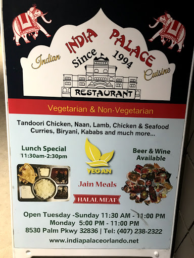We visited India Palace at least four times in Nov/Dec 15 during our visit to Walt Disney World. We tried a lot of vegetarian/non-veg options like Malai Kofta, Baingan bharta, shahi paneer, lamb rogan josh, etc. which were all extremely delicious. The spices were perfectly balanced and so was the quantity which was well priced. The location of this restaurant is a huge plus point as it is in close proximity to Disney parks. The owner and the manager both attended us really well. We would highly recommend this restaurant to everyone for nice Indian food near Disney parks.