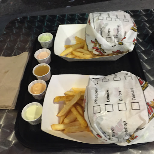Burgers are surprisingly about the same quality as Krusty Burger at Universal Studios nearby (not a good thing). Same price as Five Guys without the meat being fresh. The meat here seems to be preformed burger patties you can get from Publix in the freezer aisle. Combo didnt come with a drink either. Disappointed.