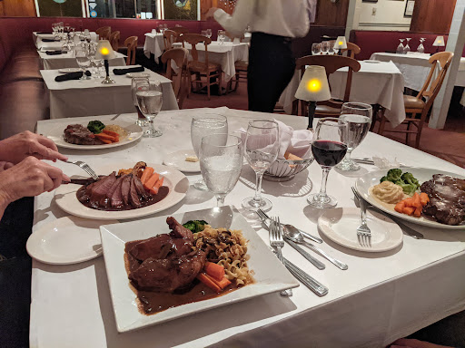 Intimate atmosphere, always great, attentive service. We went there with a large group once during Magic Dining month (which I understand that Le Coq au Vin is also doing for the month of October as well), and another time as well, to take advantage of the $33 for three courses. The first time I had the tomato tart, salmon in lemon sauce and the crepe Suzette. The tomato tart was a wonderful surprise as it did not sound that interesting to me, but, it was delicious. The salmon was served with a potato au gratin (I believe) and carrots. The sauce that was on the salmon was a great addition to the flavor palate, so much so that I just had to swirl my carrots in it. Dessert was not my favorite and was a bit too tart for my tastes. The next time I had the onion soup, coq au vin, and the apple tart. The onion soup was made with apple cider and cream and I was not sure of the combination...until I tasted it, and wow, it was good. The coq au vin is a staple and is always good. Oh, by the way, someone actually brought in a crying baby to the restaurant at 8 pm and we had to listen to him wail the entire time. Rather killed the ambiance we are accustomed to at this restaurant. Still cannot figure out why they even would consider bringing an infant out to an expensive and intimate restaurant in the first place. Nor why they would let the baby cry all evening...steadily. But this was a rare occasion for this restaurant, and in the many times I have been there, this was the only time.