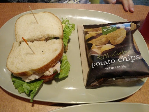 Rapid pickup? So far they are 3 for 10 at actually being on time with a correct order. Even today, sent order in at 6am for 6:45 pickup. Came in at 6:45 and order was not ready until 6:54, and not complete (no chips, no pastry, no pickle with sandwich). Picked up two frozen mocha/caramel the other day. Both tastes terrible like peppermint Ordered lunch. Im allergic to tomatoes. Bacon turkey bravo and asked for sourdough bread (using the app). Got home, took one bite and spit it out, noticing that the bread was their tomato one. Also the pickle was the size of my pinky toe. I will not be returning to this panera. The food is good but they just cant seem to get things right. The majority of the service members are nice and polite but they seem to be out of touch with whats going on.