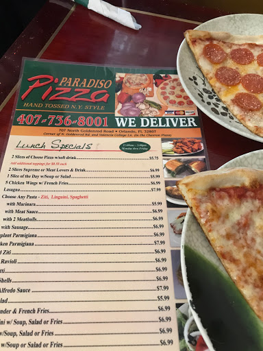 Pizza Paradiso Orlando is one of the best Pizza Restaurant I have visited last year! I really love their Cheese Pizza and of course their Gluten free pizza. Customer service is also good. The crews are very polite and kind hearted! Ill be back soon. I highly recommend them to you!