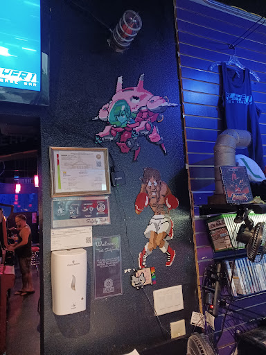 Im from out of town but I visit here every chance I get. They only serve beer and popcorn, but its a great location for gamers, geeks, and more to hang out, meet new people, and be themselves (great date spot too). Theres a cover to get in, but from there they have tons of arcade cabinets that are free to play, and a collateral system for renting booths with game consoles new and old, and tons of games. You can even play games while sitting at the bar, on huge TVs behind the bar. Great atmosphere and TONS of decor. They have a lot of huge, custom old school video game sprites hanging all over the bar, and lots of gaming paraphernalia along the bar. The music is pretty loud, but it seems to suit the atmosphere. There really needs to be more places like this across the country.