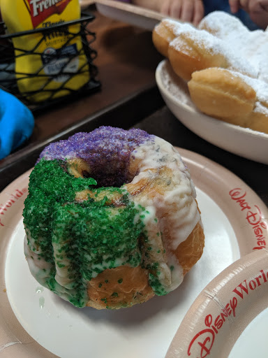 Good food court similar to others in Disney. Enjoyed the flashes of Mardi Gras in the coloured shiny coins on the county by the cashiers, the hanging beads and masques. Here is the place to get beignets! Only order the steak if you like it well done.