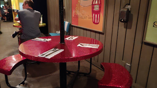 I’ve eaten at this diner about 5 times now and it never disappoints. My husband and I last went there in January of 2015 and he loves this place as well. I always get the rueben. I’m vegetarian so I order it without the meat and it comes out great. It’s like a fancy grilled cheese sandwich. The food isnt what I’d consider amazing, though the atmosphere more than makes up for it. For starters you are seated in a car. The cars are designed to look like a 1950’s to 1960’s drive in movie theater cars. They even come with speakers and the restaurant is made to look like it’s nighttime outside, with stars etc. Unfortunately, or fortunately, they dont show movies, instead they show movie trailers with old commercials and also bits that you’d see at an old drive in theater, like advertising for food etc. All in all this place is a must see for anyone visiting the Disney area, I’ve never seen a restaurant like it myself, it’s very different indeed. Tip: Be careful to request a car, if thats what youre interested in. They have a few regular tables. Also, if you have a small party, be prepared to be seated inside a car with another party.