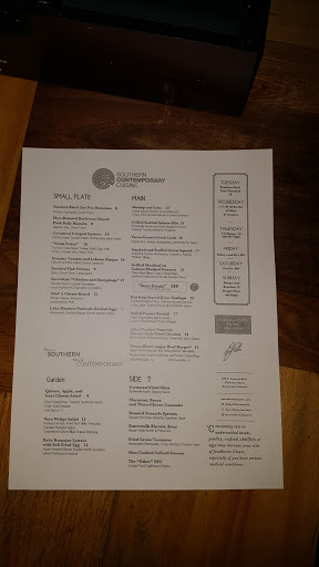 Superb experience on the last evening of Magical Dining 2016 at this casual, warm restaurant taking on classic Southern fare. Beginning with the small plates, the crispy macaroni and cheese croquettes with heirloom tomato sauce was the perfect start to an unplanned night. As a main course, the grilled meatloaf on lobster-mashed potatoes was very pleasing, full of three-meat blend, onion rings, and smoked Vidalia onion Andouille sausage gravy. From the regular menu, a plate of chicken fried New York strip with garlic mashed potatoes, topped with white truffle pepper gravy sat at my table as well, and was indulging at most. Baked apple crisp, a pecan streusel, topped with vanilla bean ice cream made its ultimate appearance. Though known to be a casual restaurant, this mesmerizing location is perfect for an upscale date with excellent food and an exclusive drink selection taking on a sophisticated feel.
