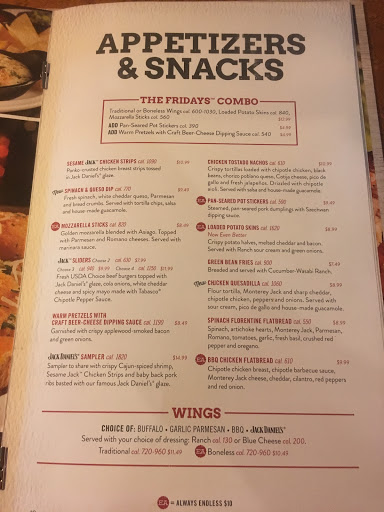 My fiance and I went there last night and it was nad from the beginning. The service was very slow as we waited for almost 10 mins for us to be greeted at our table and drink order to be taken. We both ordered the house long island iced teas. When they arrived mine was different from his but we at first thought they just used two different glasses. We had noticed later there was some sort of pink substance (i was assuming particules of the strawberry mix) in the drink....long islands def. do not have that. :/ I had ordered the chicken club sandwhich which described grilled chicken and it was to come with fries. My fiance ordered one of the sizzling chicken and spinach. When the food came, he chicken was certainly not sizzling, my fries were old and cold and my chicken on the sandwich was iced cold. We told them to please take it back and we were just going to leave. The manager did come out to apologize but her explanation was for my sandwhich that they refrdigerate my chicken and put it on the bread......Gross. Who wants old refridgerated food? Grilled chicken to me is off the grill and then on the bread....but anyway. She did acknowlwdge that him and I were goven two different cocktails and looking at the rest of the food you can tell none of it was anywhere hot or fresh. She did offer to make us something else but again, we were over it at that point. As we were walking out, there was a family sitting behind us and the father said to us that their experience and food was not any better. This was the last time I ever go to a Fridays. It was just a terrible experience from the beginning.